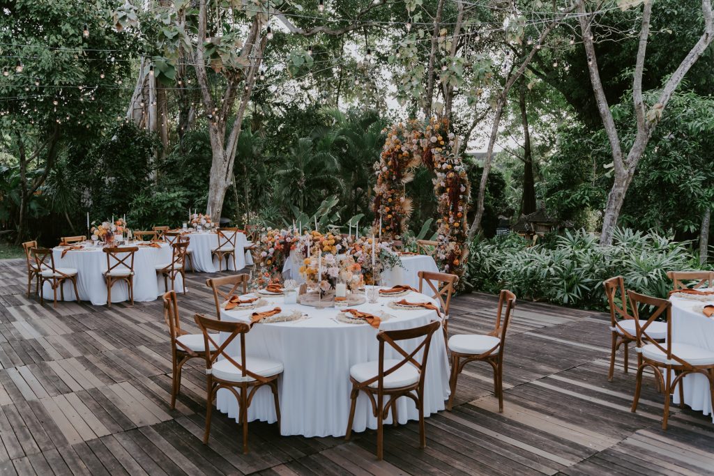 Caroline & Turgay’s Wedding February 19, 2026 Bali Wedding Rental Product Featured : Crossback Chair Natural Long Banquet Table Black / White Round Banquet Table Black / White Paloma Signing Table White Wash Fairy Light Warm Yellow LED Hologen Napkin Terracotta Bali Placemat Lanterns Set Gold