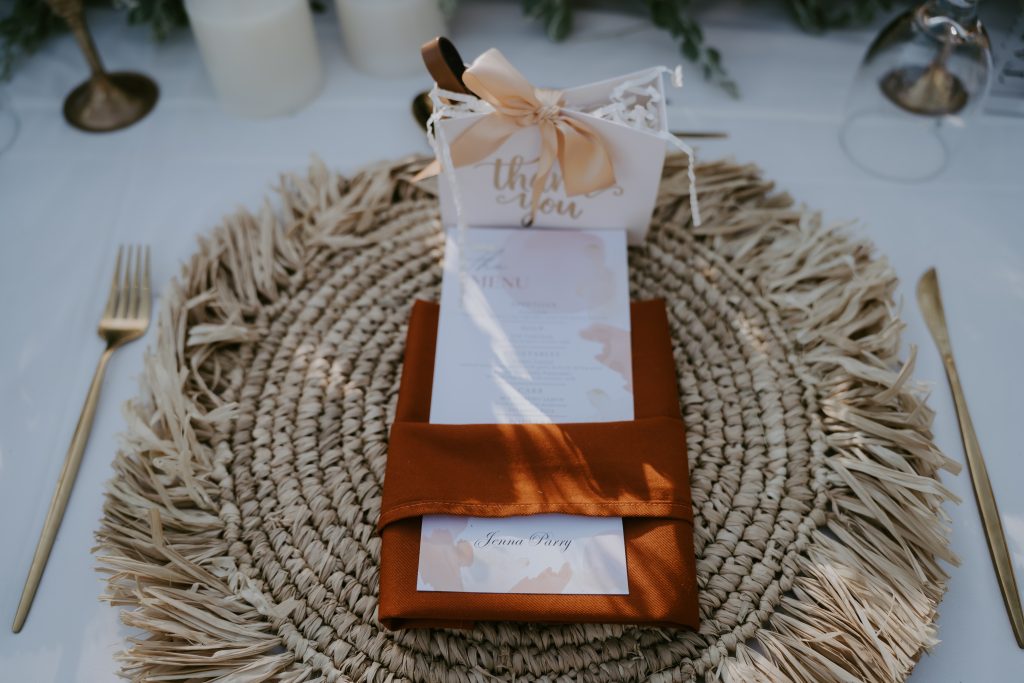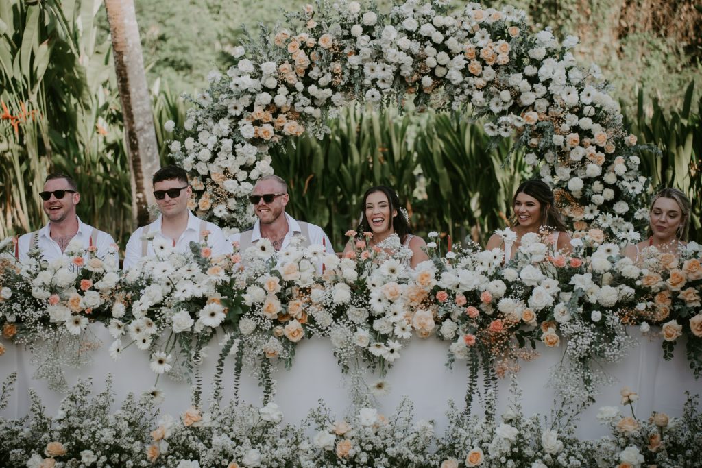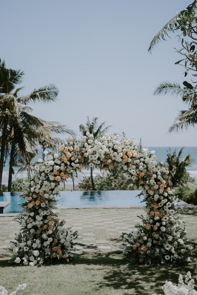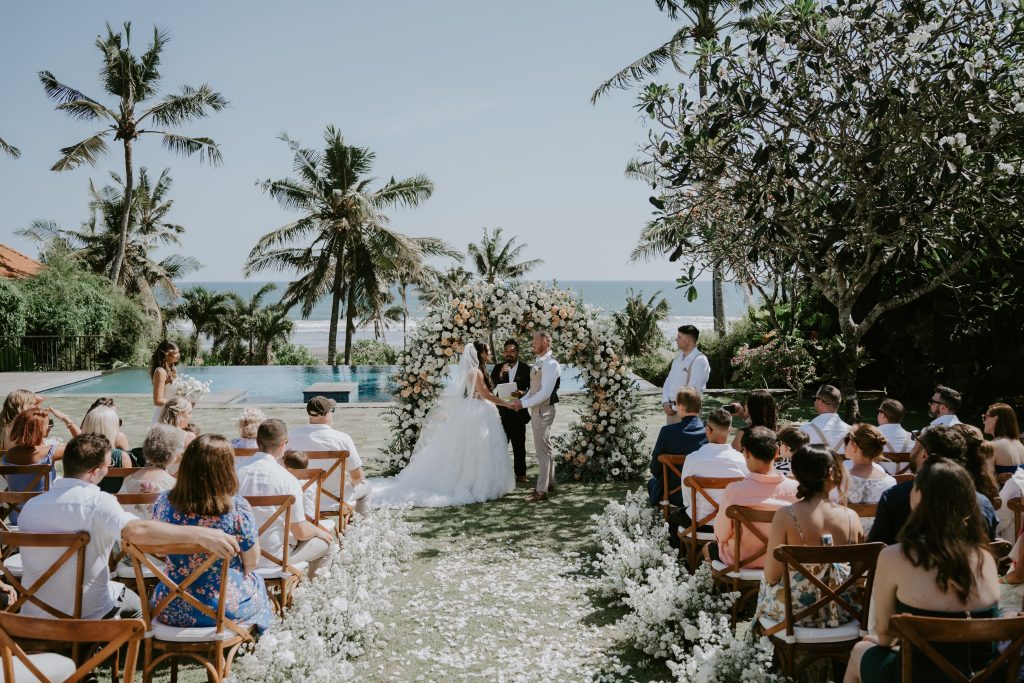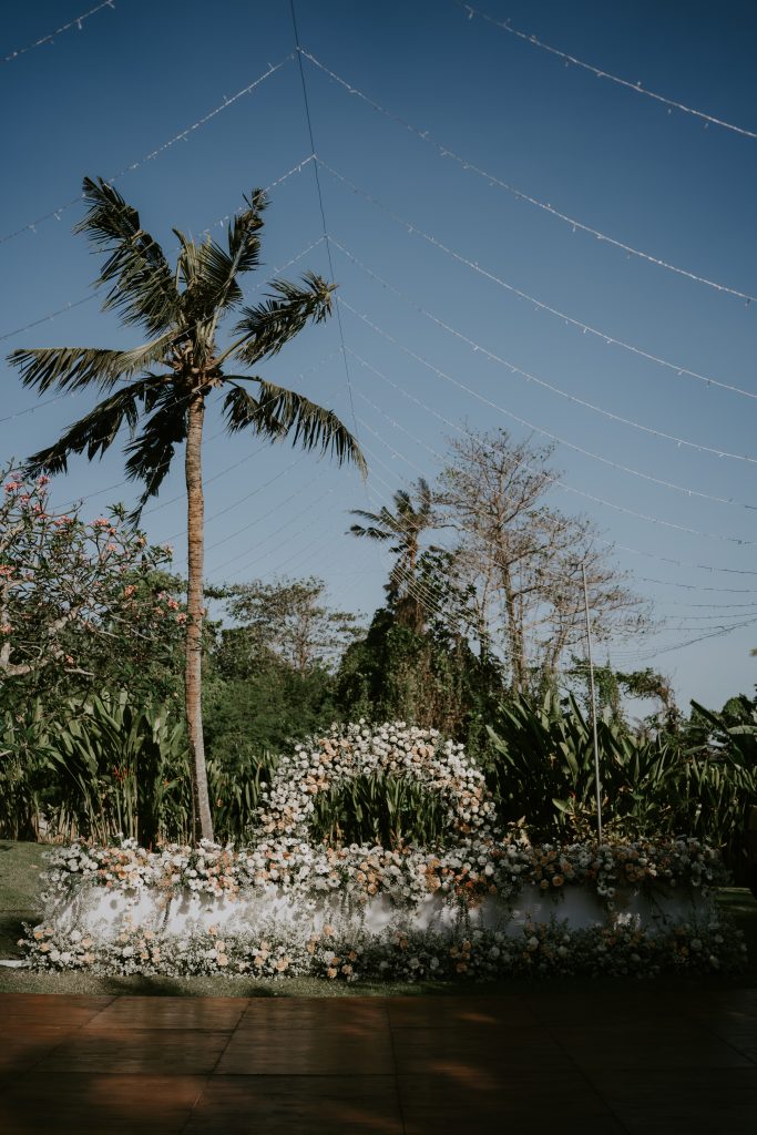 Jenna & Andy’s Wedding February 19, 2026February 19, 2026 Bali Wedding Rental Product Featured : Crossback Chair Natural Long Banquet Table Black / White Wooden Dance Floor Electric Ivory Taper Candle Marie Candle Holder Set Gold Round Banquet Table Black / White Paloma Signing Table White Wash Fairy Light Warm Yellow LED Hologen Napkin Terracotta Bali Placemat Xari Table White