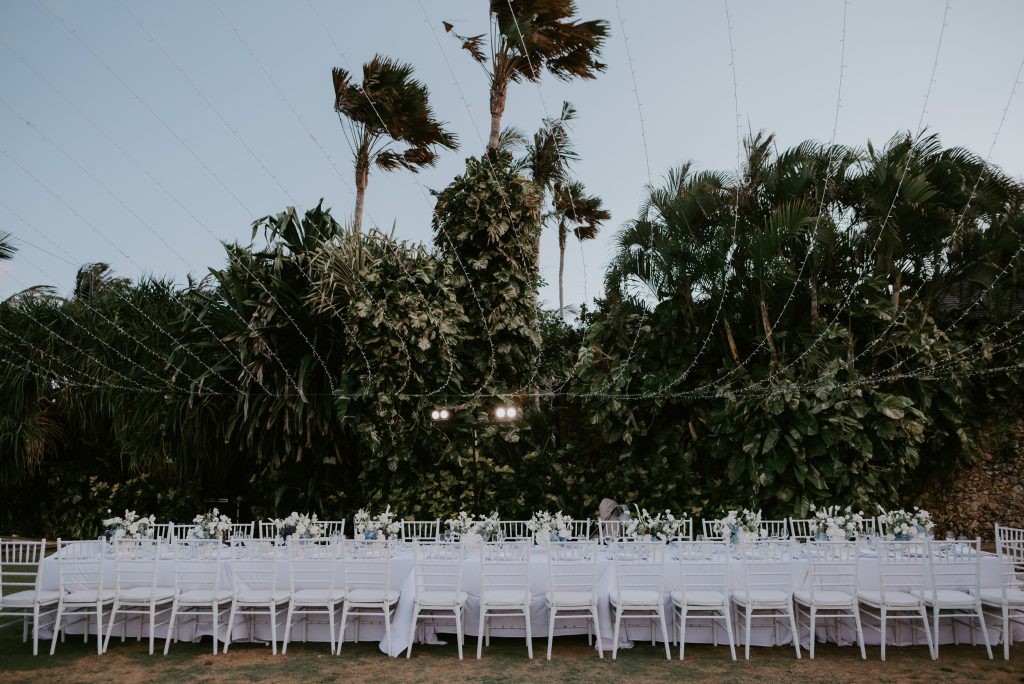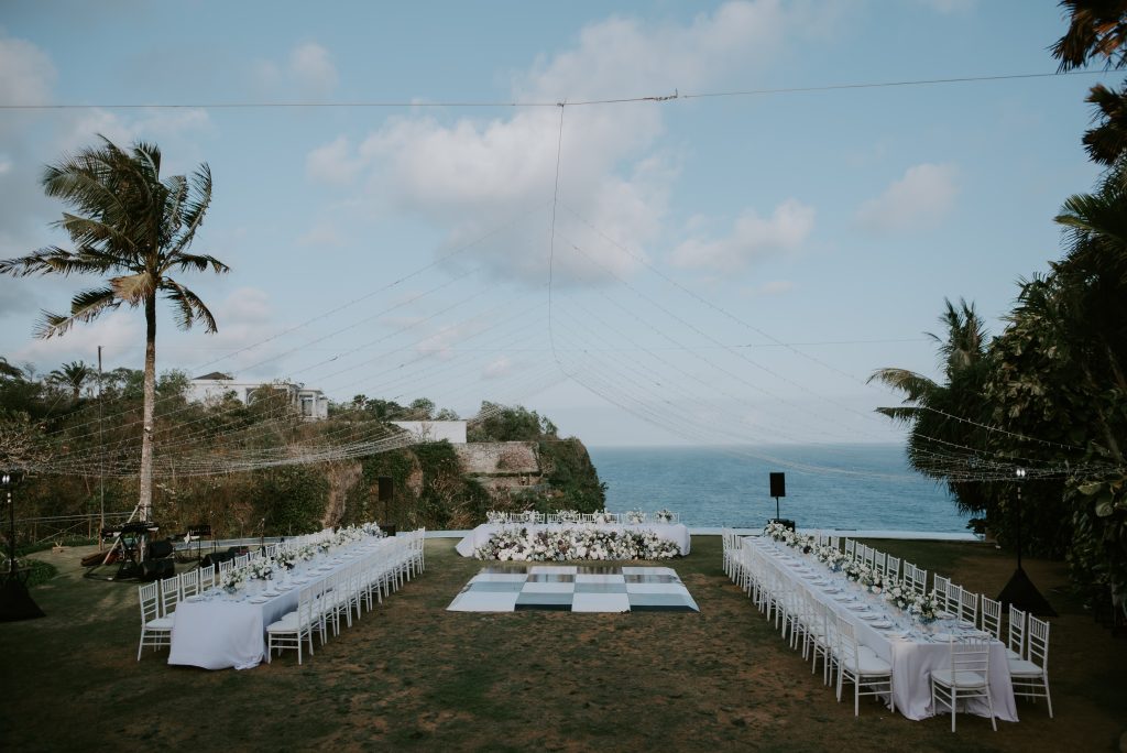 Shiofra & Oisin’s Wedding February 18, 2026 Bali Wedding Rental Product Featured : Tiffany Chair White Long Banquet Table Black / White Fairy Light Warm Yellow Checker Dance Floor