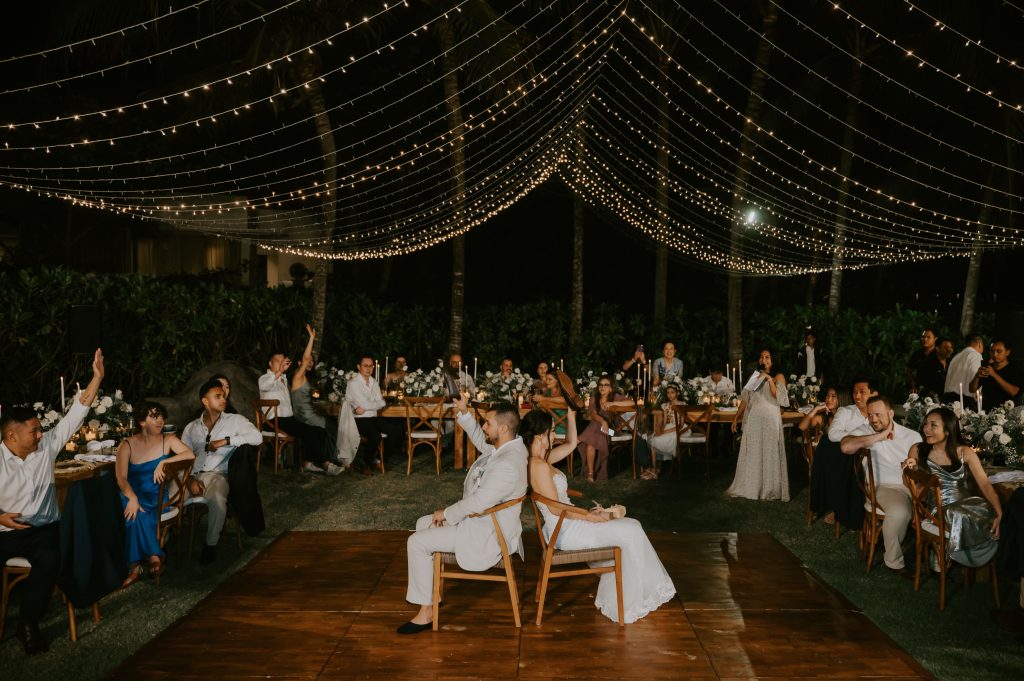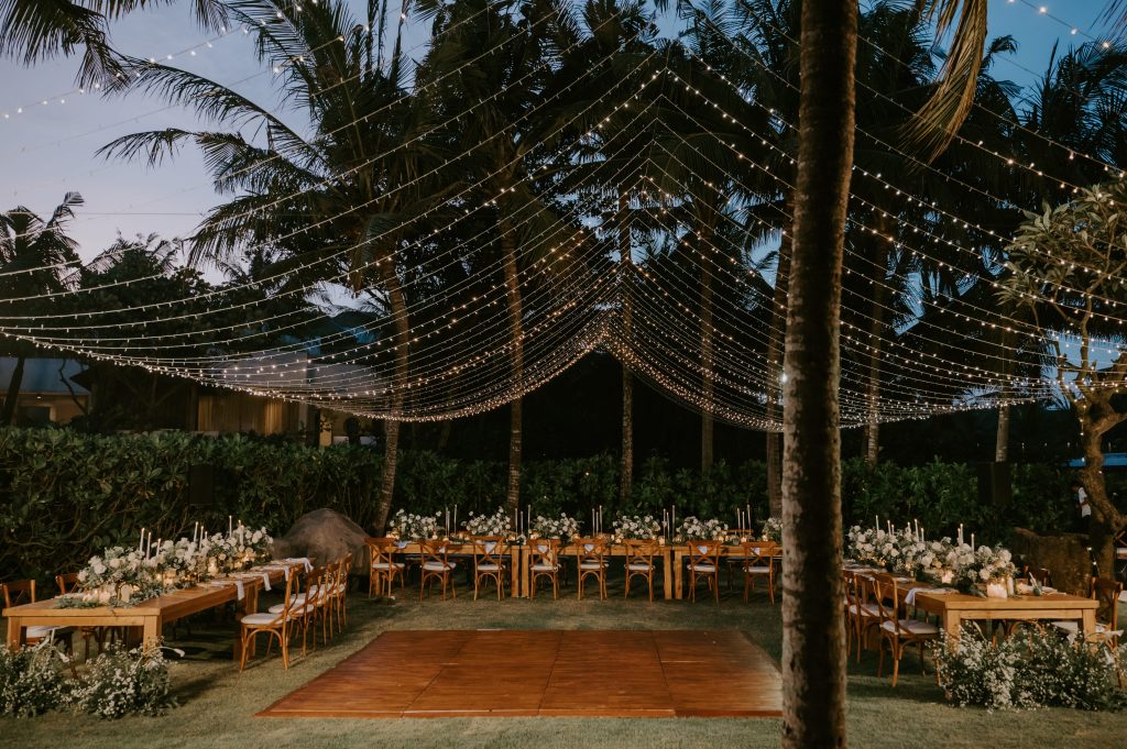 Tanya & Hugo’s Wedding February 3, 2026February 18, 2026 Bali Wedding Rental Product Featured : Crossback Chair Natural Marie Candle Holder Set Gold Electric Ivory Taper Candle Bamboo Vase Glass Lanterns Set Gold Electric Swinging Candle Tall & Short Fairy Light Warm Yellow Napkin Soft blue Wooden Dance Floor Wooden Long Table